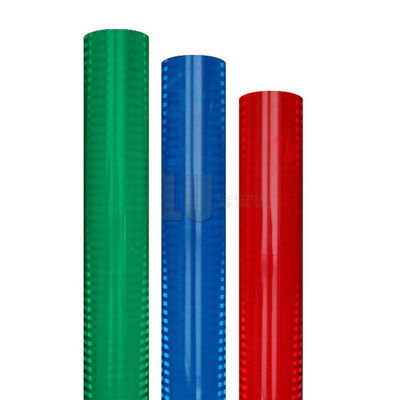 La taille standard de notre feuille de signalisation réfléchissante prismatique haute intensité est de 48 pouces * 50 yards, et les couleurs disponibles sont le blanc, le jaune, l'orange, le rouge, le vert, le bleu, le marron, le jaune fluorescent, le vert et l'orange fluorescent.