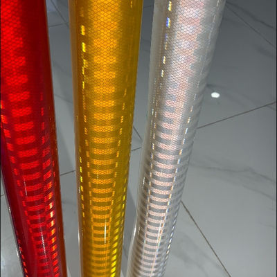 Cette feuille réfléchissante prismatique est un film rétro réfléchissant de haute intensité avec une large application dans les panneaux de signalisation et les panneaux de sécurité.